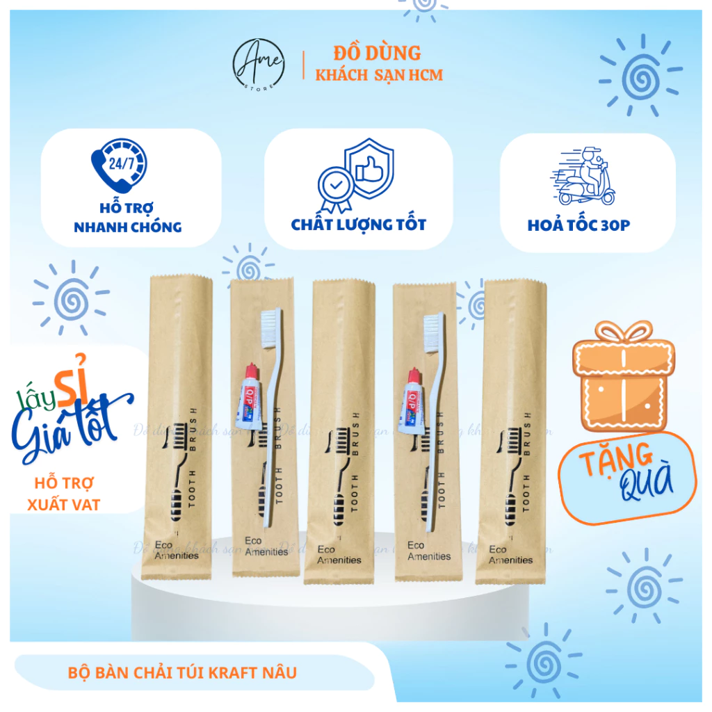 Sản phẩm 100 Bộ TÚI KRAFT NÂU+ Bàn chải THÂN THIỆN + KEM ĐỎ đã được thiết kế đặc biệt cho các khách sạn và resort 3 sao, với những ưu điểm nổi bật sau: