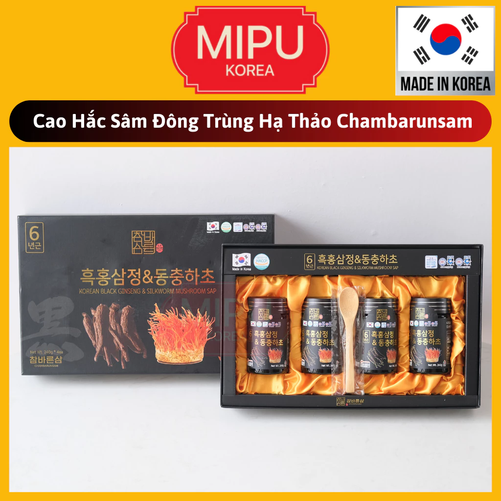🔥 (Date 1/2027) Cao Hắc Sâm Đông Trùng Hạ Thảo Chambarunsam Hàn Quốc 4 lọ x 240g đang giảm giá!