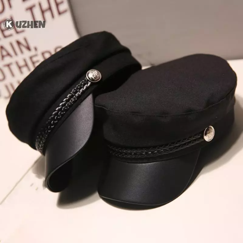 🔥 KUZHEN Mũ Da Thủy Thủ Mũ Flat Top Captain Cap Du Lịch Cadet Hat HOT đang giảm giá!