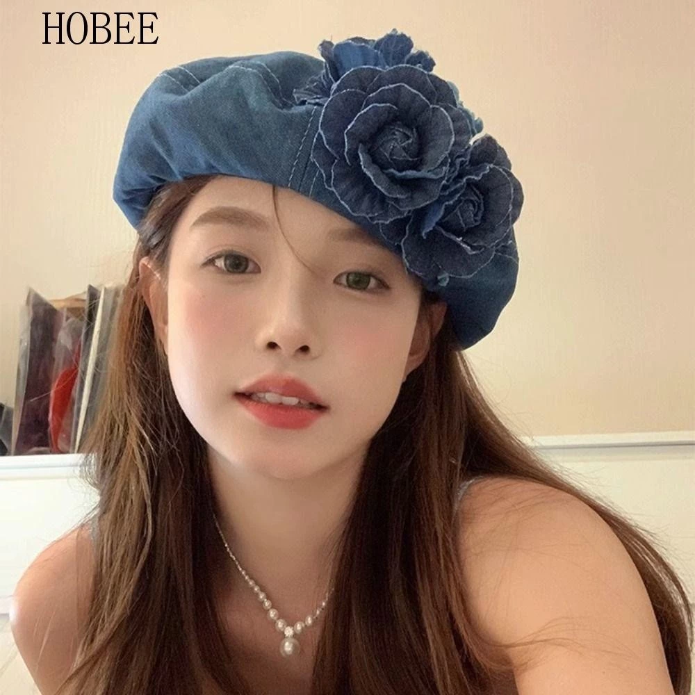 🔥 Mũ Nồi và Beret Camellia Denim Hoa Y2K – Phong Cách Hàn Quốc, Perfect cho Du Lịch đang giảm giá!